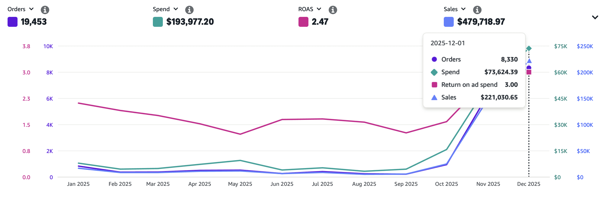 By fully restructuring advertising, preparing months ahead of the season, and expanding demand through video and complementary targeting, we turned a single product into a $27K/day revenue driver — with profitability intact.